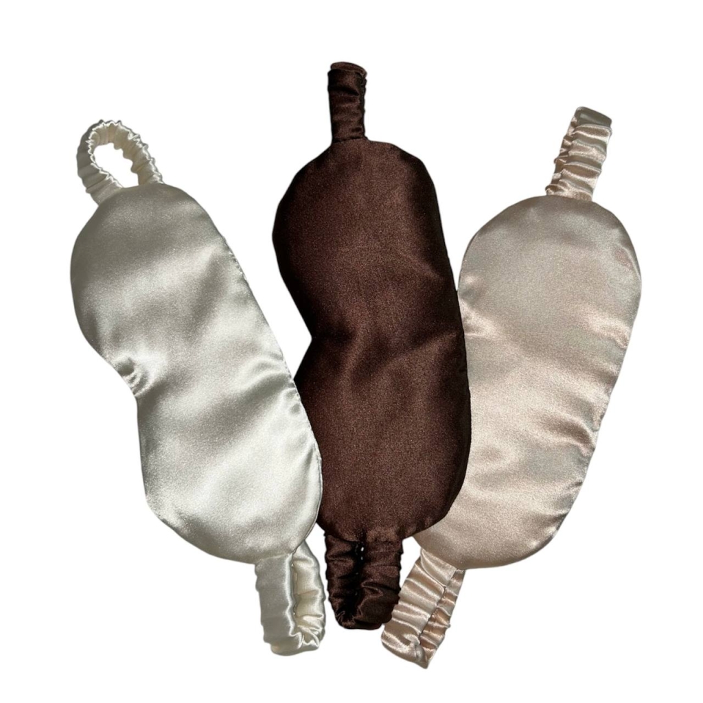 Маска фіксується натуральною мʼякою еластичною стрічкою з натурального шовку, яка не травмує волосся під час сну.