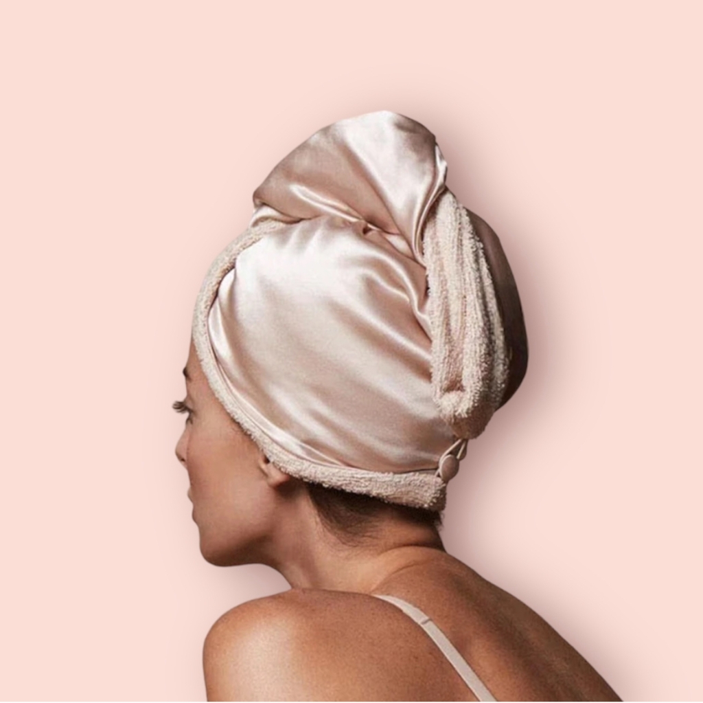 Двосторонній тюрбан-рушник з натурального 100% шовку (Італія) та 100% бавовняної махри (Туреччина).